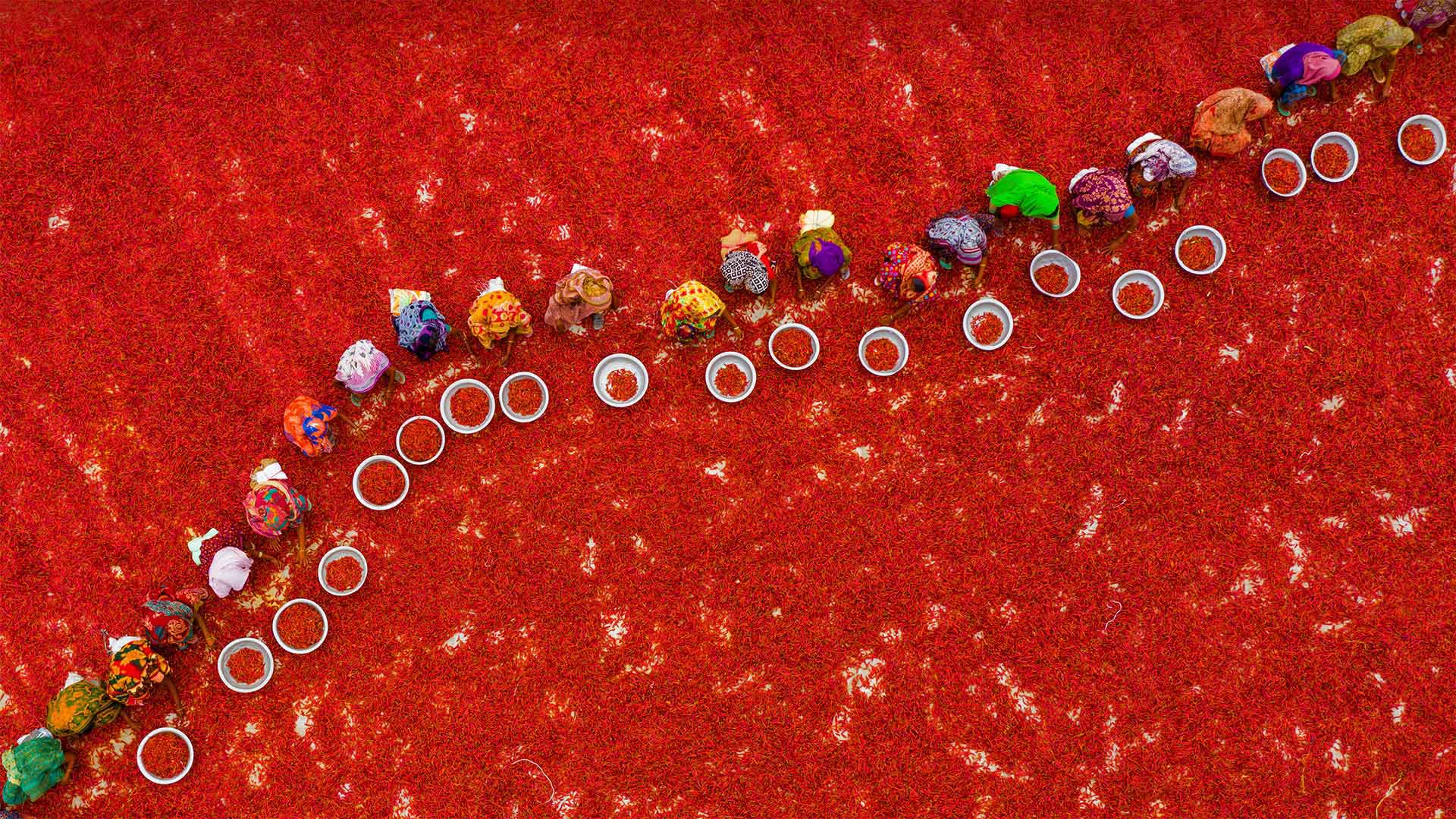 Sorting chili peppers at a farm in Bogra, Bangladesh (© Amazing Aerial Agency/Offset/Shutterstock)