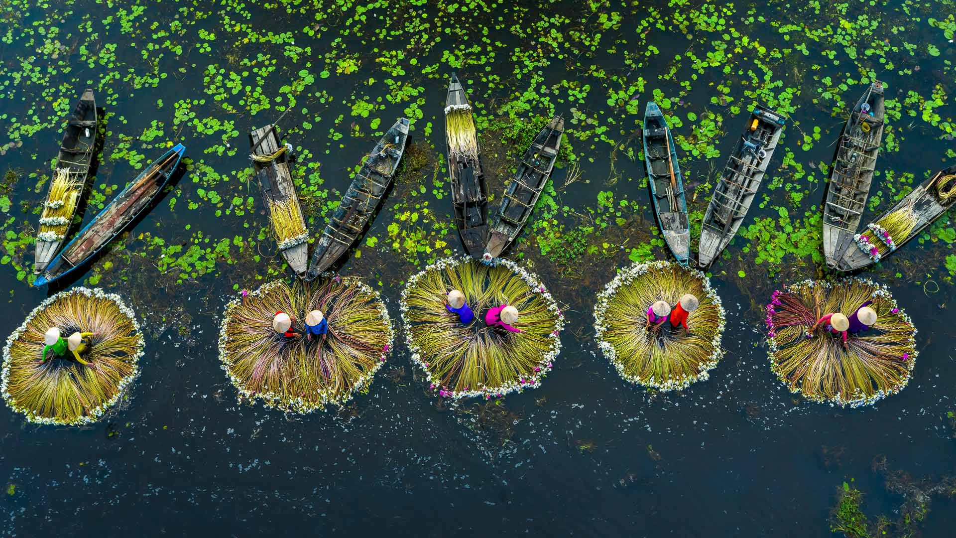 Water lily harvest, Mekong River Delta, Long An, Vietnam (© Khanh Phan/Solent News/Shutterstock)